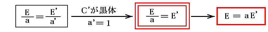 何かごまかされたような証明であるが、証明を通じて輻射能Eと吸収能aがこのような意味を持つ量であると定義されると考えれば良いのだろう。