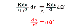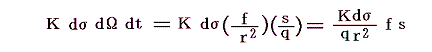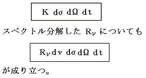 Kは単位時間、単位面積、単位立体角に付いての値だから、時間幅dt、面積量cosθ・dσ、立体角dΩを乗じてある。今後の式表示に付いても同様に考えて下さい。