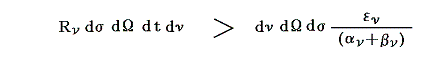 なぜなら、εν、αν、Rνは体積要素dτ中の場所によらないと仮定しているから、一つの色について吸収と放出のエネルギーが釣り合わなかったら、媒質全体の至る所で問題の色のエネルギー放射が他の色の放射の犠牲のもとに絶え間なく増減を繰り返すことになり、Rνが時間に対して不変である(熱力学的平衡にある)という条件を満たせなくなるからである。