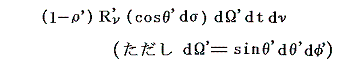 3.(2)での考察から解ったように、球面上の面積要素dσからdt時間にdΩの立体角を持って物質要素dτ中の体積素片fsに来る輻射のエネルギーは