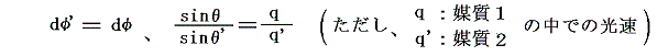 ここで媒質1、2に於ける光速をq、q’とすると、屈折の法則から