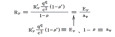 のqを真空中の光速度cに置き換え、そこでの結論[q’2Rν’が媒質によらない][ρ’(真空に対する反射係数)は媒質が定まれば決まる]を用いることによっても得られる。そのときEνとaνを下記の様に定義すれば、