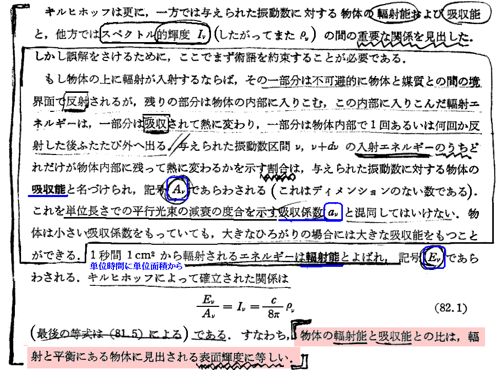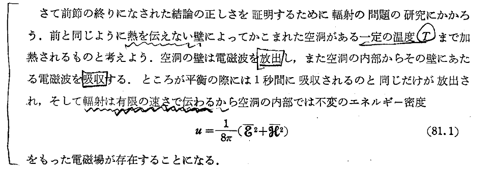 物質と輻射の熱的平衡において成り立つ有名な法則ですがその論理は複雑で込み入っています。できるだけ解りやすく説明します。