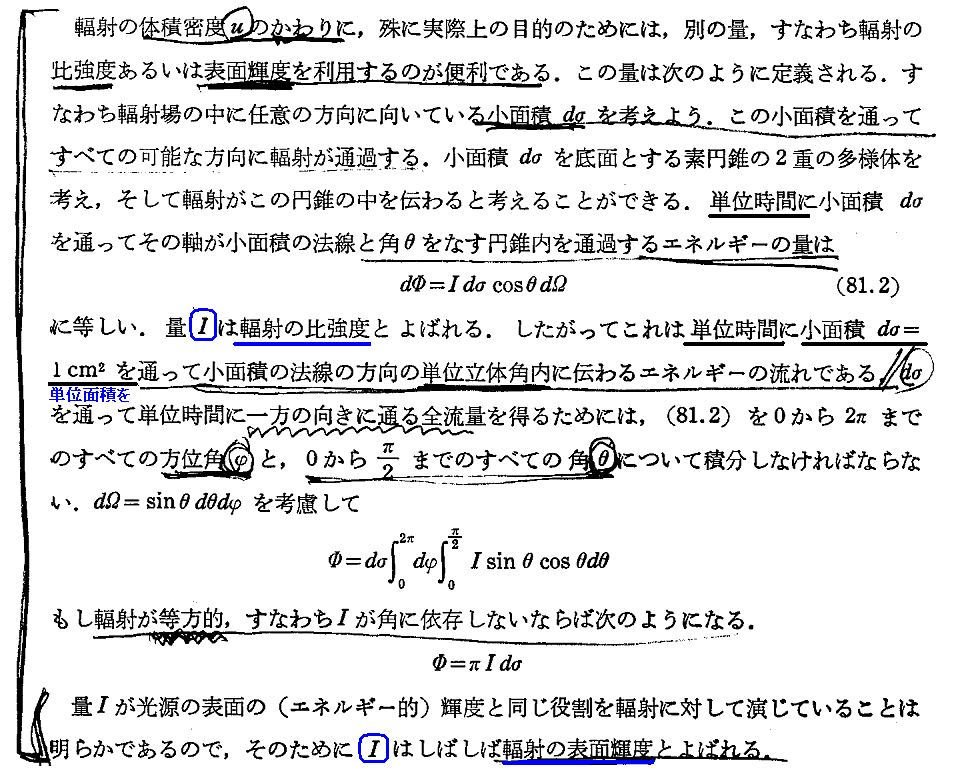 これらの式は輻射を取り扱う様々な場面で利用されるとても重要な結論です。
