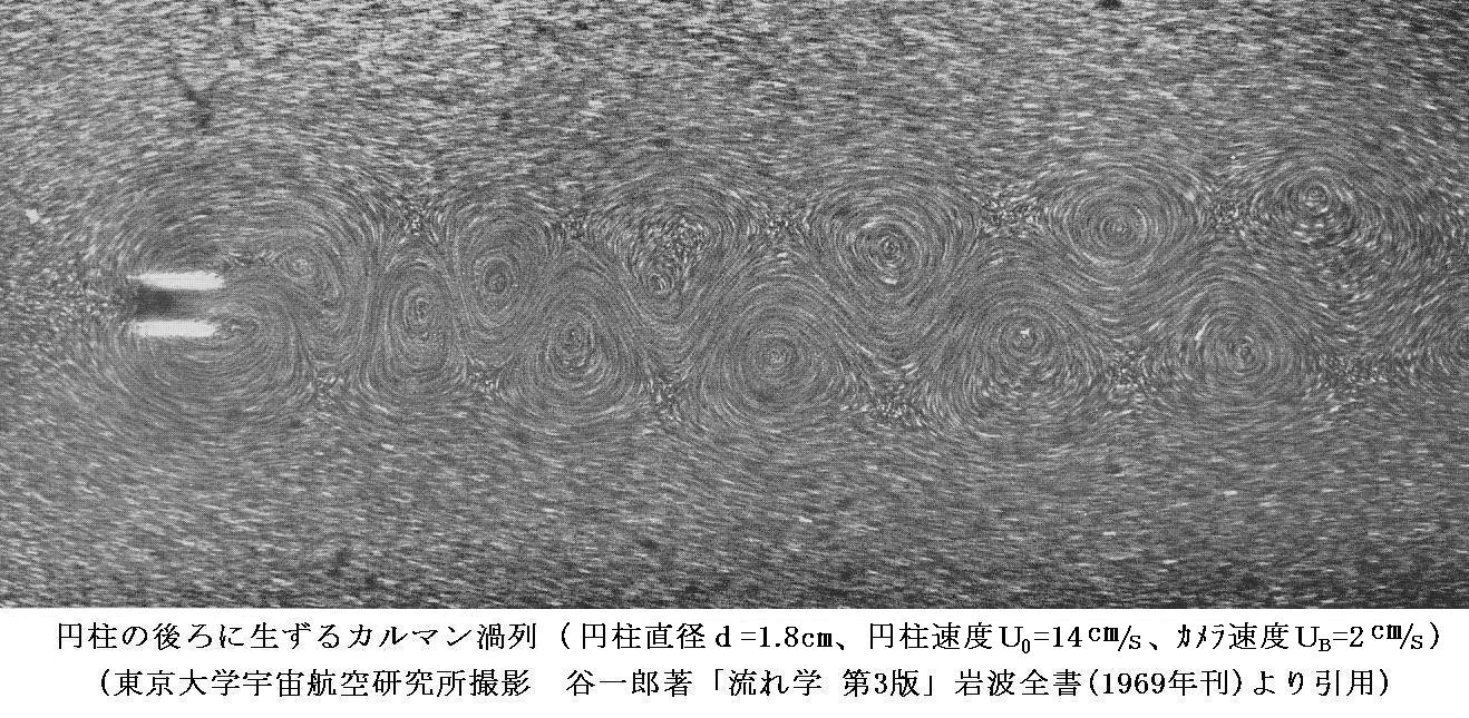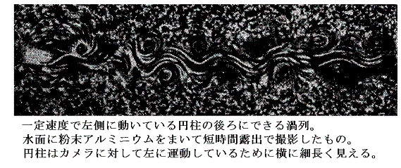 そのとき発生する渦は以下の写真に示すように、いつも特定の並び方と移動速度をもっている。