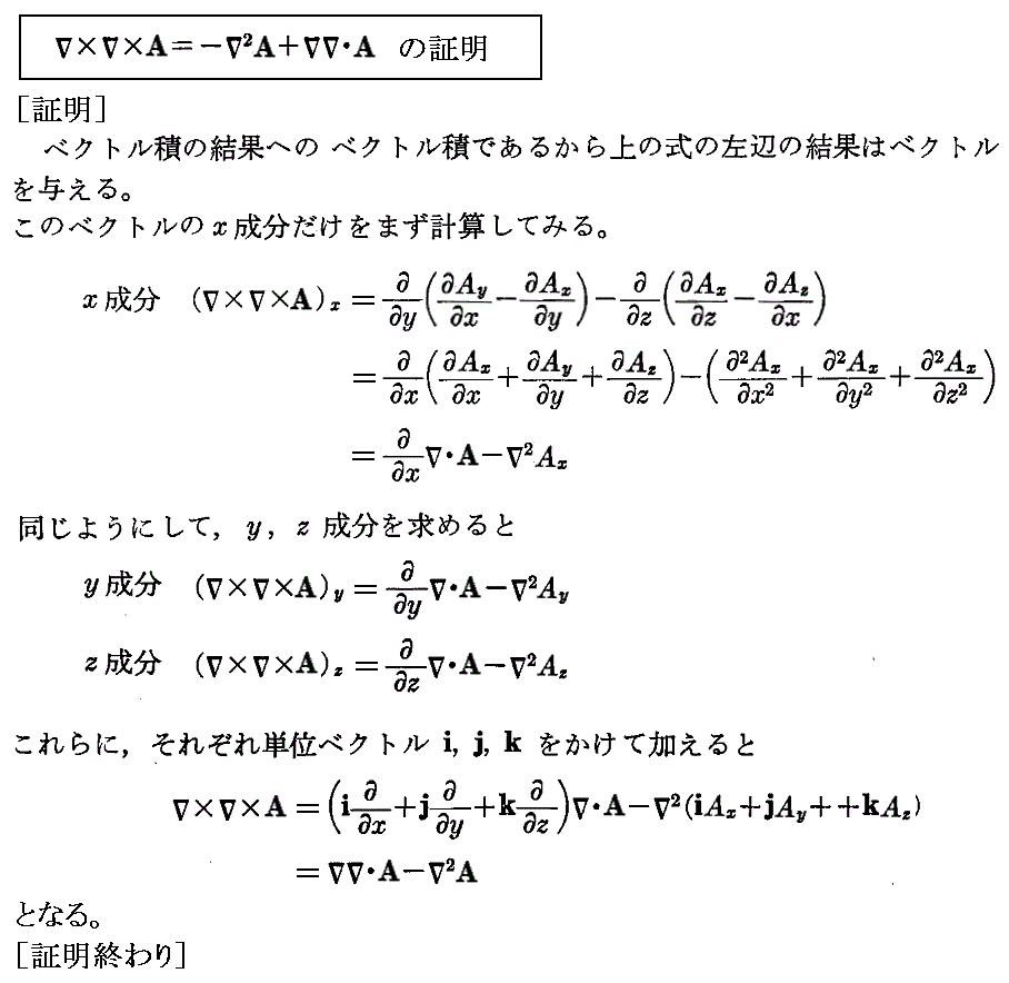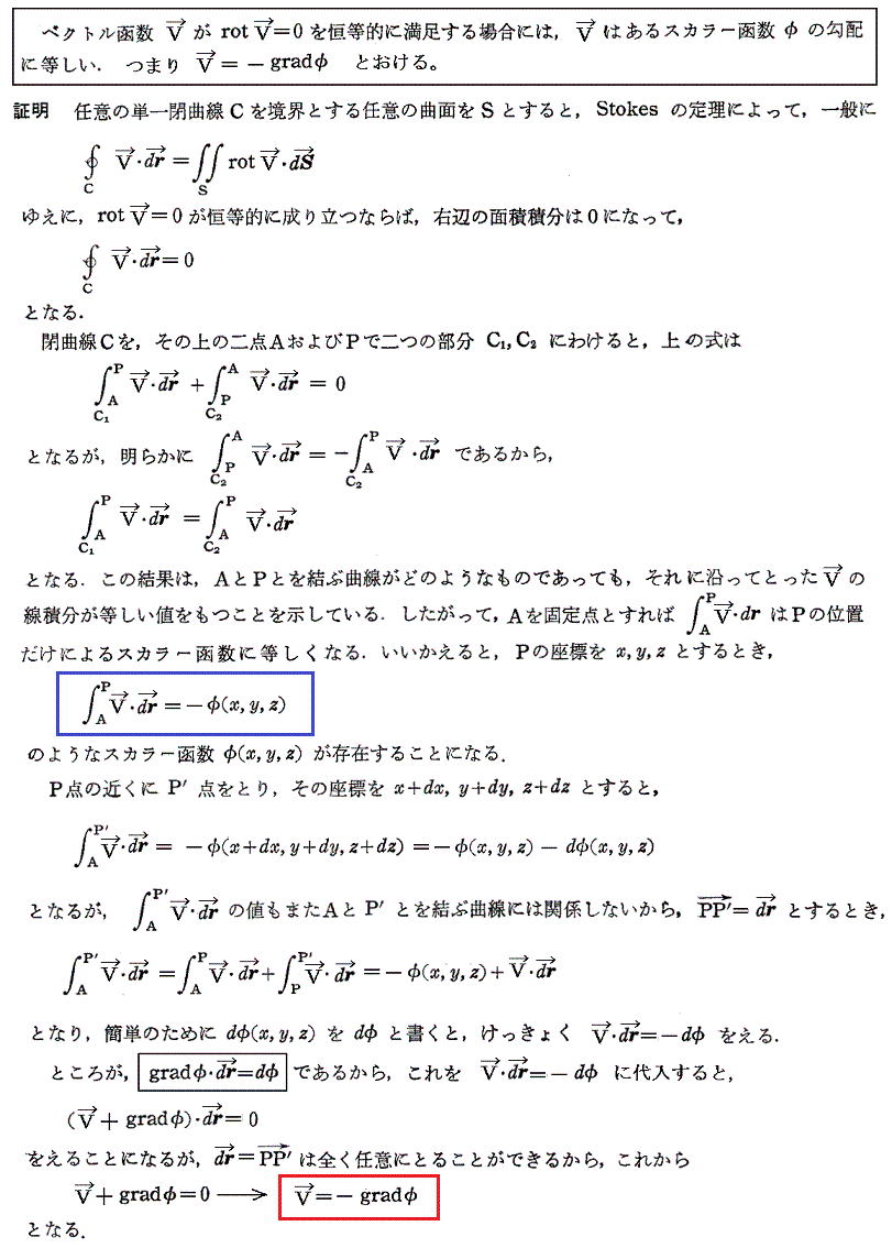 さらに、rotgradΦ=0 は恒等的に成り立つ[成分表示で計算すると直ちに証明できる]ので、当然のことながらrotv1=0を満足している。