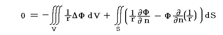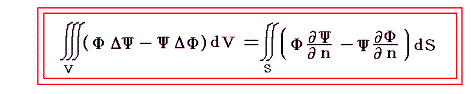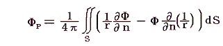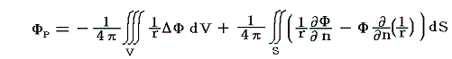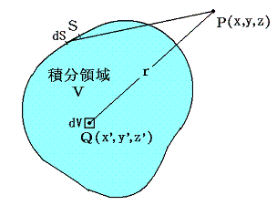 となる。すなわち、領域Vの中のすべての点においてΔΦが与えられ、領域Vを囲む閉曲面Sの上でΦおよび(∂Φ/∂n)が与えられている場合、P点におけるΦの値ΦPは上記の式で与えられる。