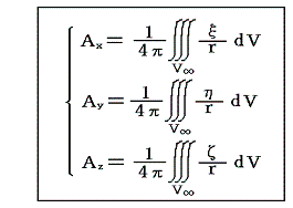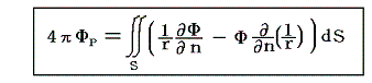 の形のグリーンの定理においてΦ=スカラーポテンシャル、Ψ=1/r とすると、以下の重要な結論が得られる。ただしrは空間内の任意の積分動点Q(x',y',z')から一つの定点P(x,y,z)に至る距離で