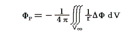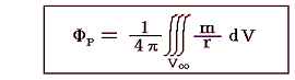 となる。これは、まさしく領域のすべてにおいてmが与えられている場合、任意の点P(x,y,z)におけるΦ(x,y,z)の値を与える式である。mは積分動点Q(x',y',z')における値で、rはP(x,y,z)とQ(x',y',z')の間の距離
