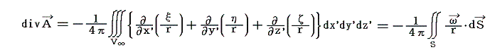で表される。湧き出しmの分布が有限の領域に限られる場合には、こようなベクトル関数v1は、無限遠において1/r2の程度で0に近づくので、最初の条件を確かに満たしている。