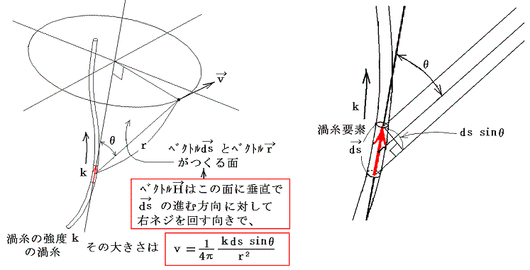 以上の結論から、渦糸系全体はそのままの形を保ったままで斜めの方向へ動く。その移動方向はx軸に対する傾斜角をθとすると