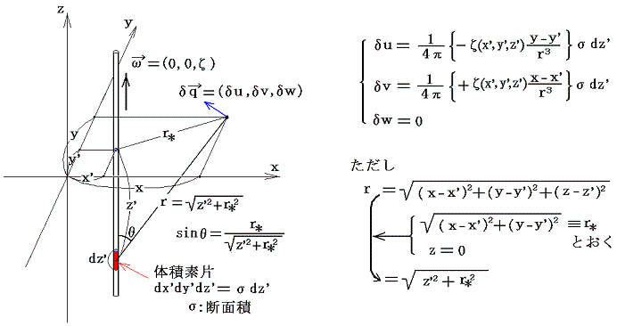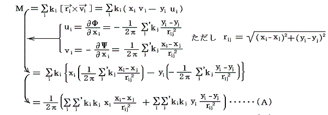 と表すことにする。ここで、x0、y0は原点にある渦糸の位置時刻tにおける座標値です。z0の上のバーは共役であることを明示するためです。