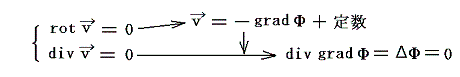 これは運動方程式から導かれたラグランジュの渦定理を適応した渦なし完全流体の流れに対する連続の方程式の要請によるものです。