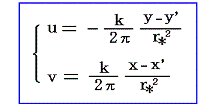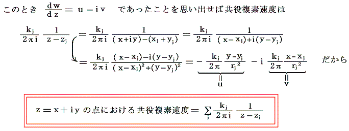 渦糸の位置以外の任意の点z=x+iyにおける共役複素速度は