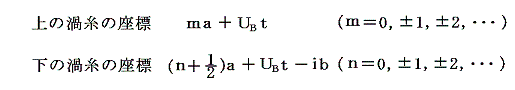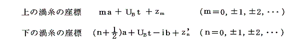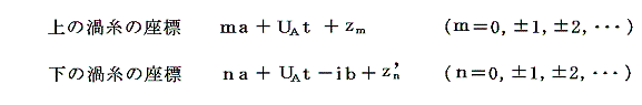 この渦列全体は前章で求めた速度UBで左方へ動くから、任意時刻tにおける渦糸系の座標は