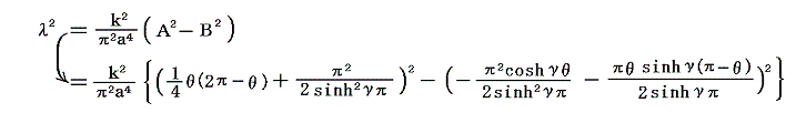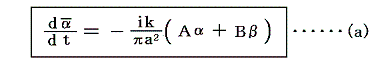 ここで微小変位をα、βを小さな複素数として、zm=αcos(mθ)、zn’=βcos(nθ)のタイプのものを考える。ここで0<θ<2πとする。もしθが小さいと、これらの攪乱は波長2πa/θの波動の性質を持つ。そのようにするのはすでに述べた理由による。