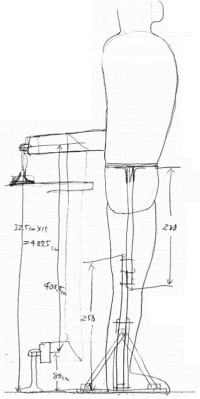 腰回りの状況図と、上半身をつり下げる柱の様子