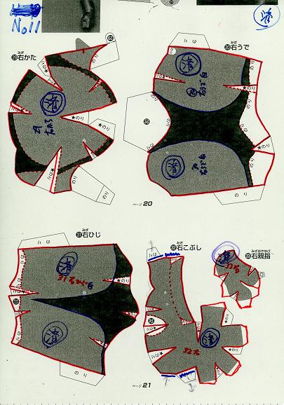 型紙として公文出版の「くもんペーパークラフト ウルトラマン」を用いた。それをOHP用のセルにコビーしたものを改良して使用した。