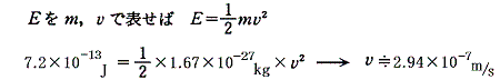 はじき出される陽子の運動エネルギーが4.5MeV=7.2×10-13Jだから、その速度は
