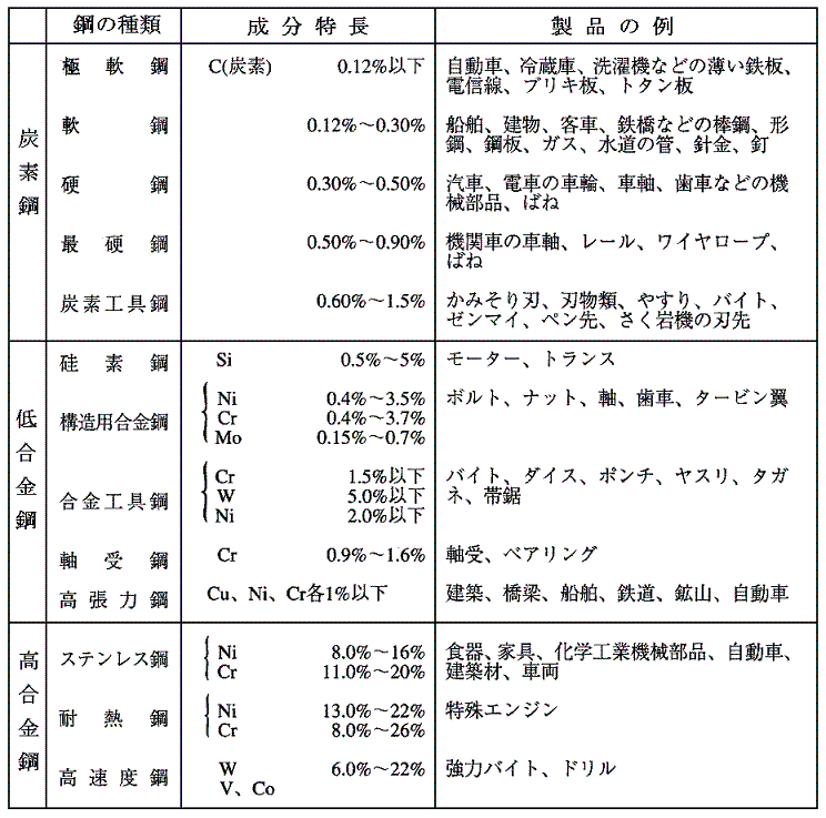 - 高温での硬さと強さを著しく増すので、高速度鋼としてバイト等に用いられる。