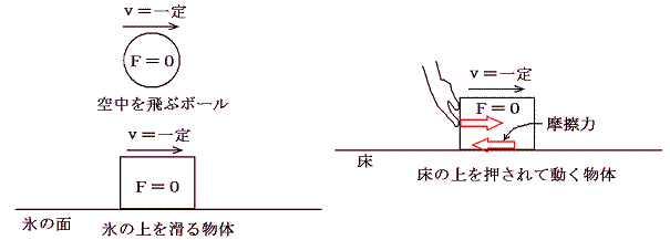 これは驚くべき断定である。なぜならガリレオの時代の人にとって、アリストテレス以来物体は力が働いている場合に動き、力を及ぼすのをやめてしまったら止まってしまうのは常識だったからだ。実際床の上にある物体は力を加えて押せば動き、押すのをやめてしまったらすぐに止まる。押す力を大きくすれば動く速さが大きくなる。つまりアリストテレスが考えたように物体の動く速度は力に比例する様に見える。