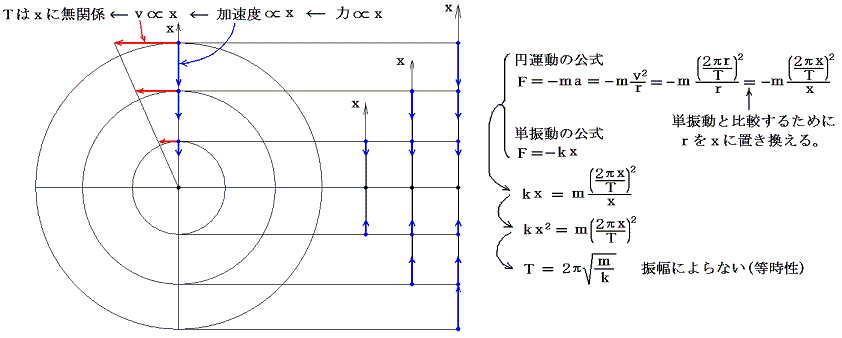 だから「向心加速度が変位に比例する場合、その運動はつり合いの位置を中心にした単振動」になる。