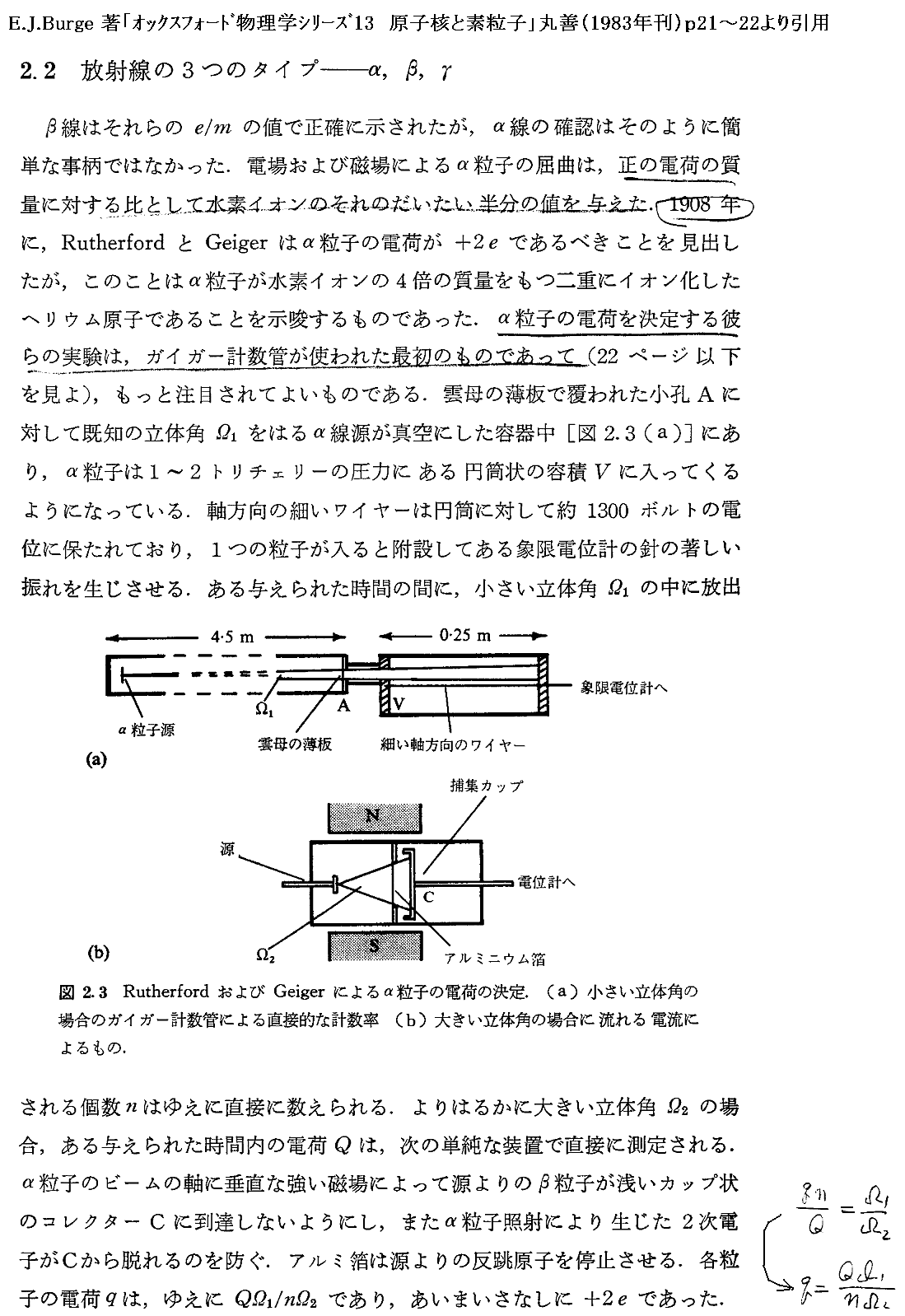 以下は、ラザフォードによって提出された単一散乱理論(1911年)を確かめるために、ガイガーとマースデンが1913年に行った実験の説明です。