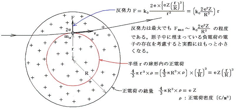 以下に述べるようにトムソンや長岡のモデルではα線の大角度散乱を説明できない。その当たりの事情をトムソンのモデルを用いて議論する。