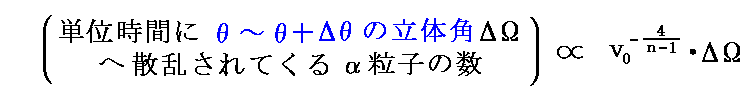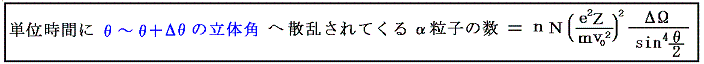 厚さ方向には1mあたりN1/3層の散乱層が並んでいるのだから、いま1辺1mの立方体の散乱体に、単位時間・単位面積あたりn個の割合でα粒子が入射するとすると、単位時間にθ〜θ+Δθの角度領域に散乱されてくるα粒子の個数は