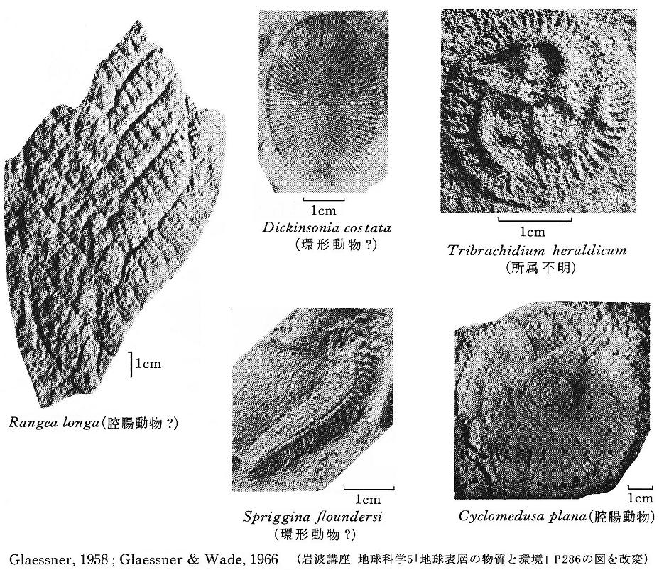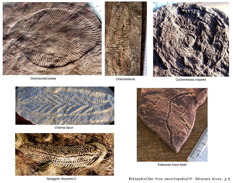 オーストラリアの地質学者のレッグ・スプリッグ(RegSprigg)が、1946年に南オーストラリアのフリンダース山地の西端、エディアカラ・ヒル近くの廃坑でこの種の化石を見つけた。スプリッグの発見に敬意を表してエディアカラ生物と総称されている。(ガブリエル・ウォーカー著「スノーボールアース」早川書房p240)