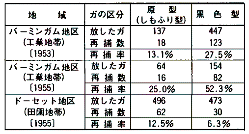 これを自然選択の例証として有名にしたのが1950年代に行われたバーナード・ケトルウェルの実験である。