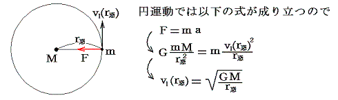 高校物理Uで習うように公転軌道速度v1は