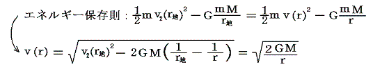 となる。これは当然のことであるが、上記の脱出速度v2(r)と全く同じ関数形になる。