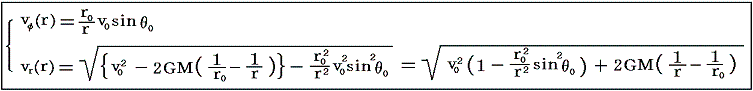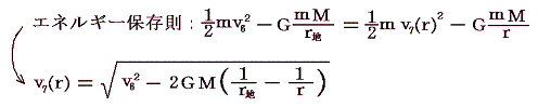 また、上記の二つの保存則をvφ(r)、vr(r)の連立方程式と見なして解けば
