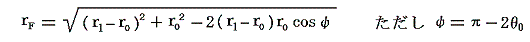 と表される。また、三角形ESFに三角関数の余弦定理を用いると太陽Sと楕円の焦点Fとの距離をrFは