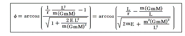 楕円の極座標表示をもちいると、太陽からの距離rは方位角φ(上図参照)を用いて以下の様に表される。