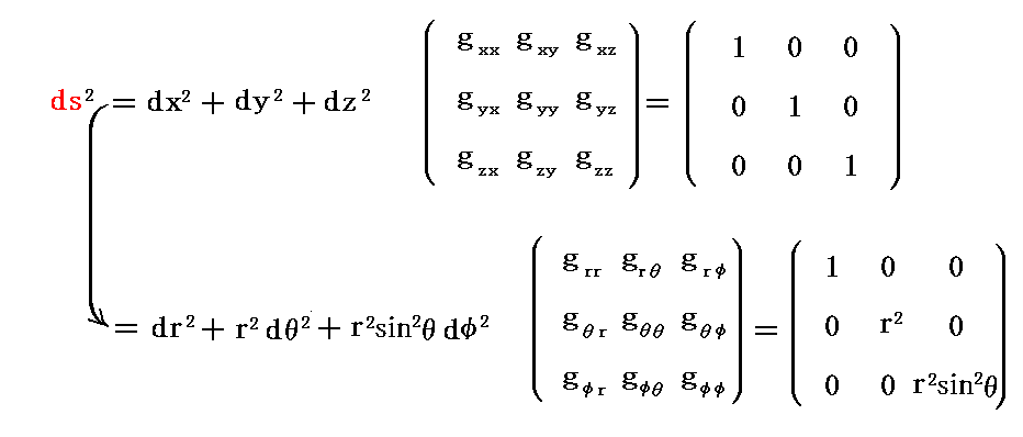 線素dsの表現からそれぞれの微小単位セルの計量テンソルを求めておくと
