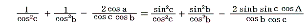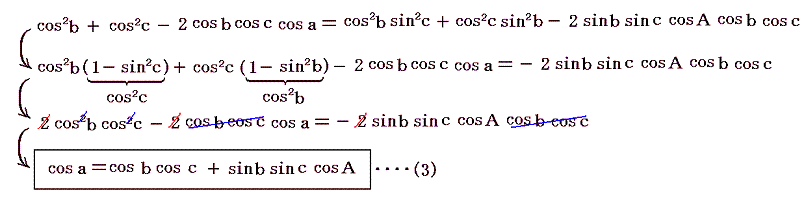 余弦公式(3)のcoscにさらに余弦法則を適応すれば