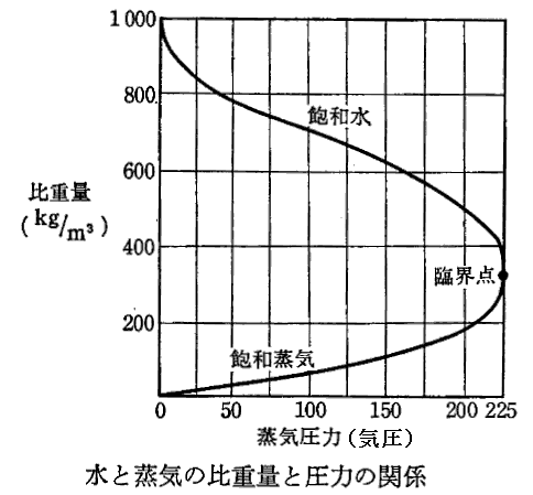 しかしながら、発生蒸気が高温・高圧になるにつれて、下図に示すように蒸気と水の密度差は減少してくる。