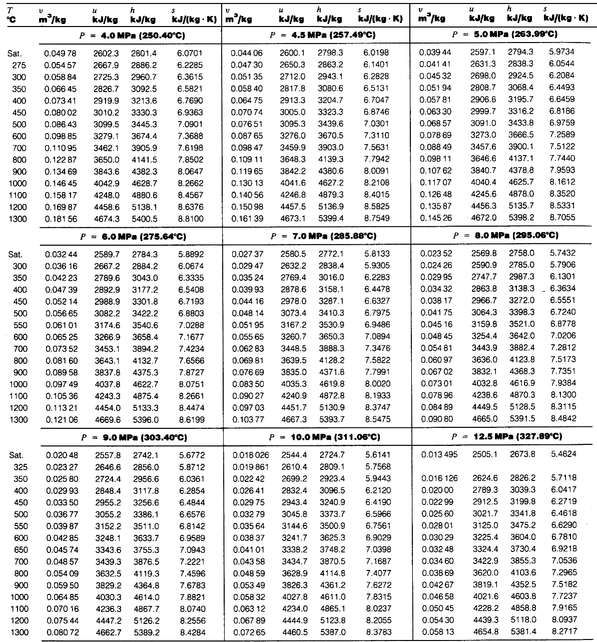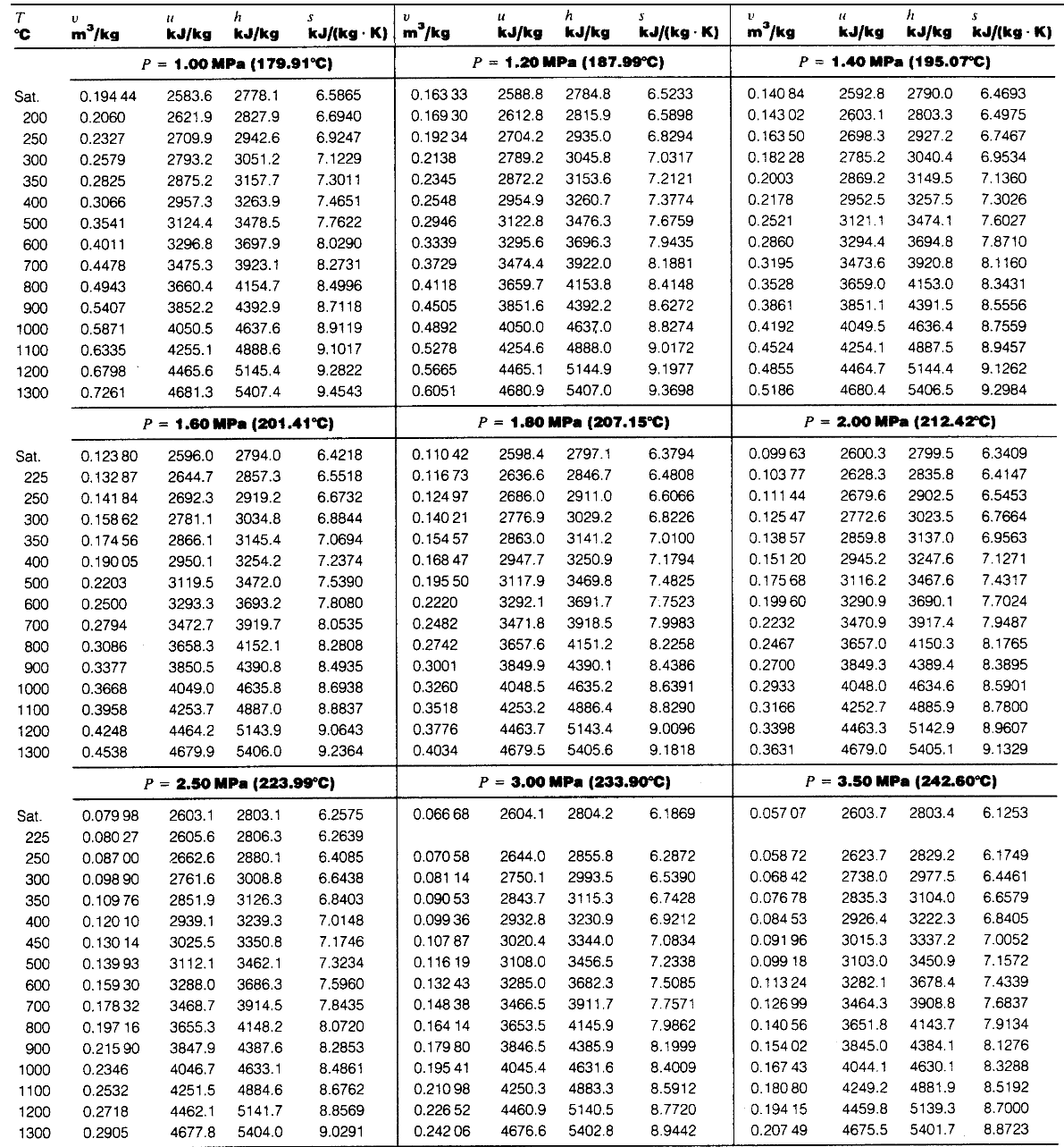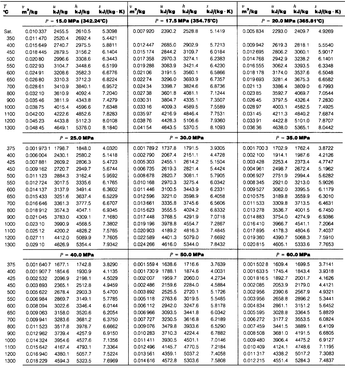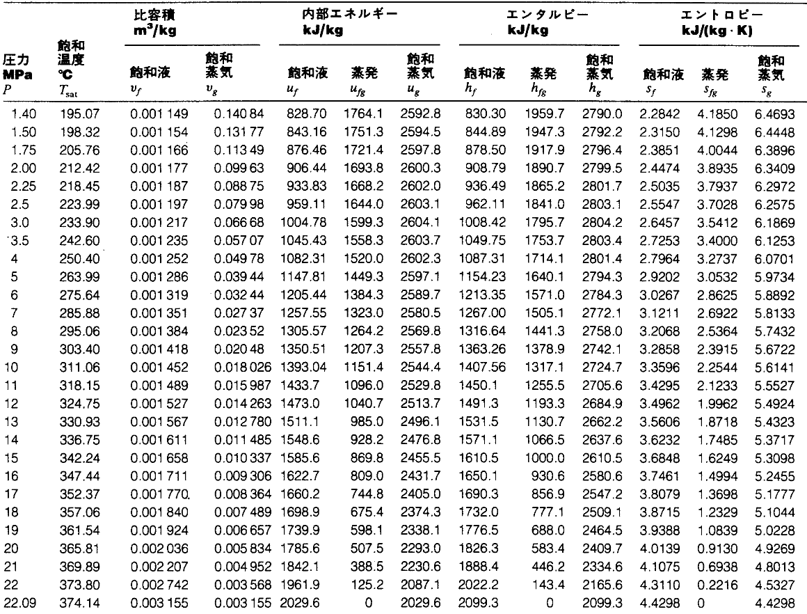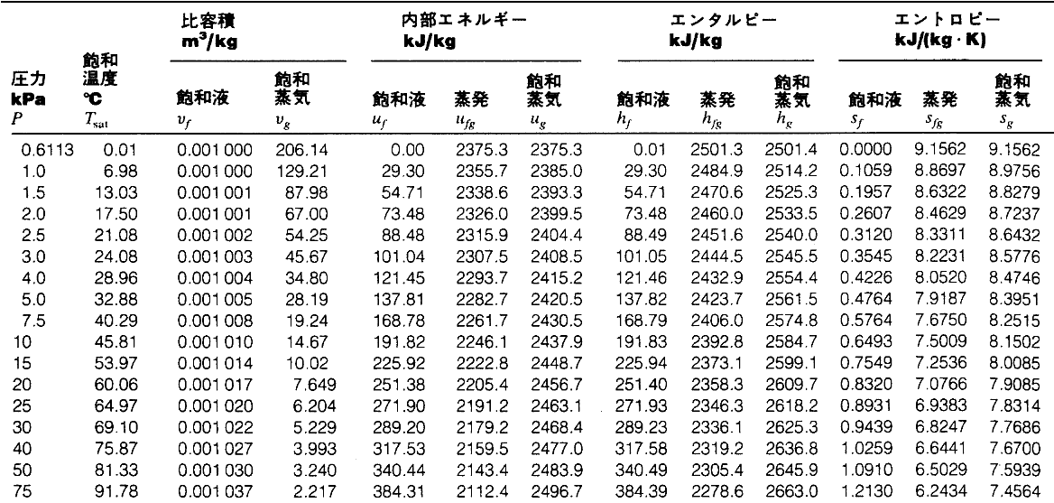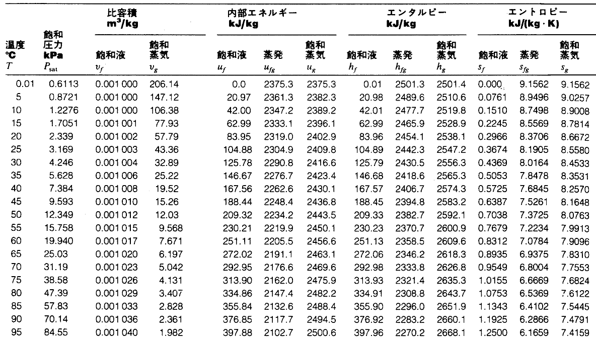 蒸気表(Steam Tables)
