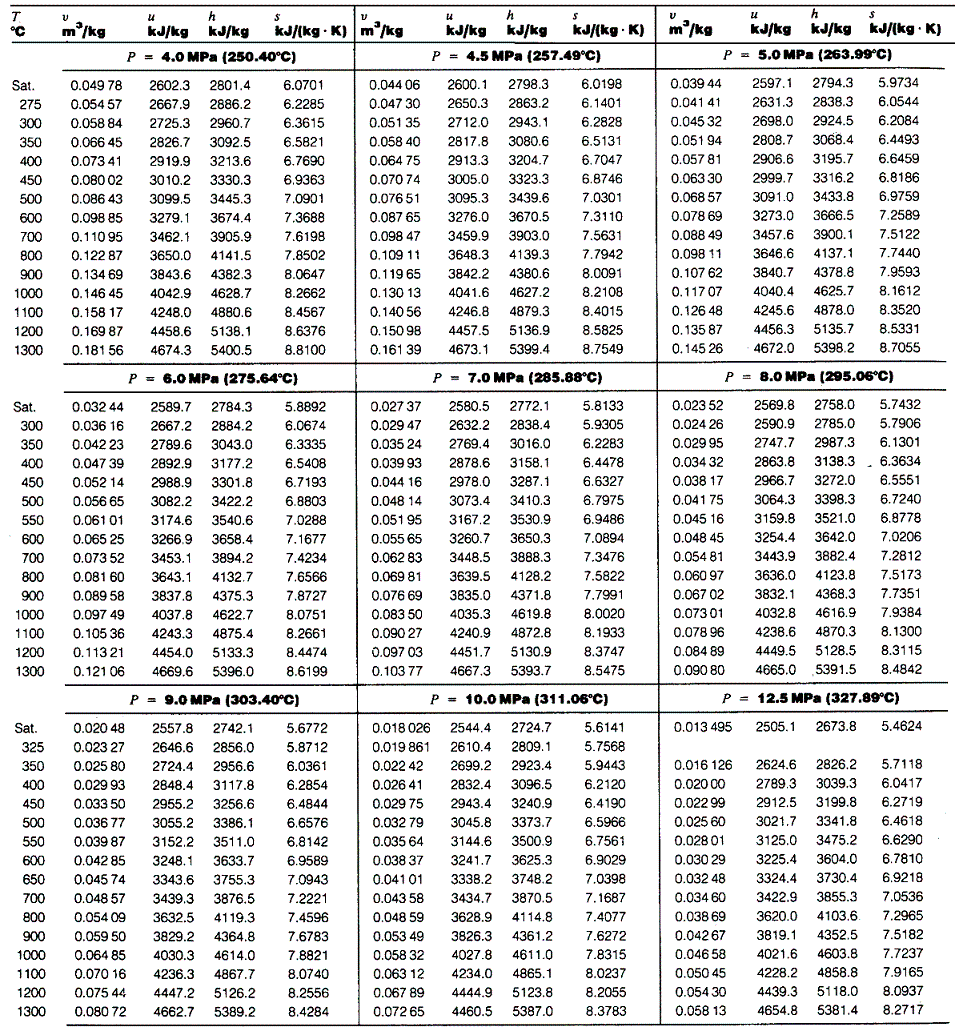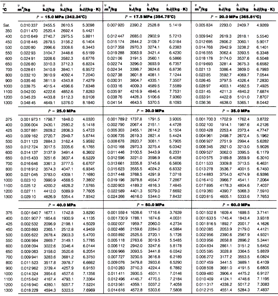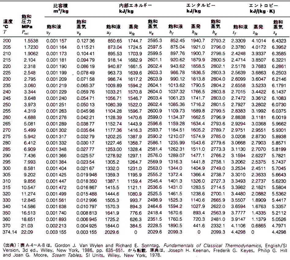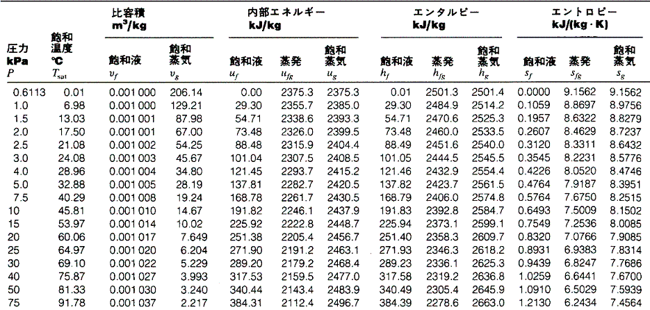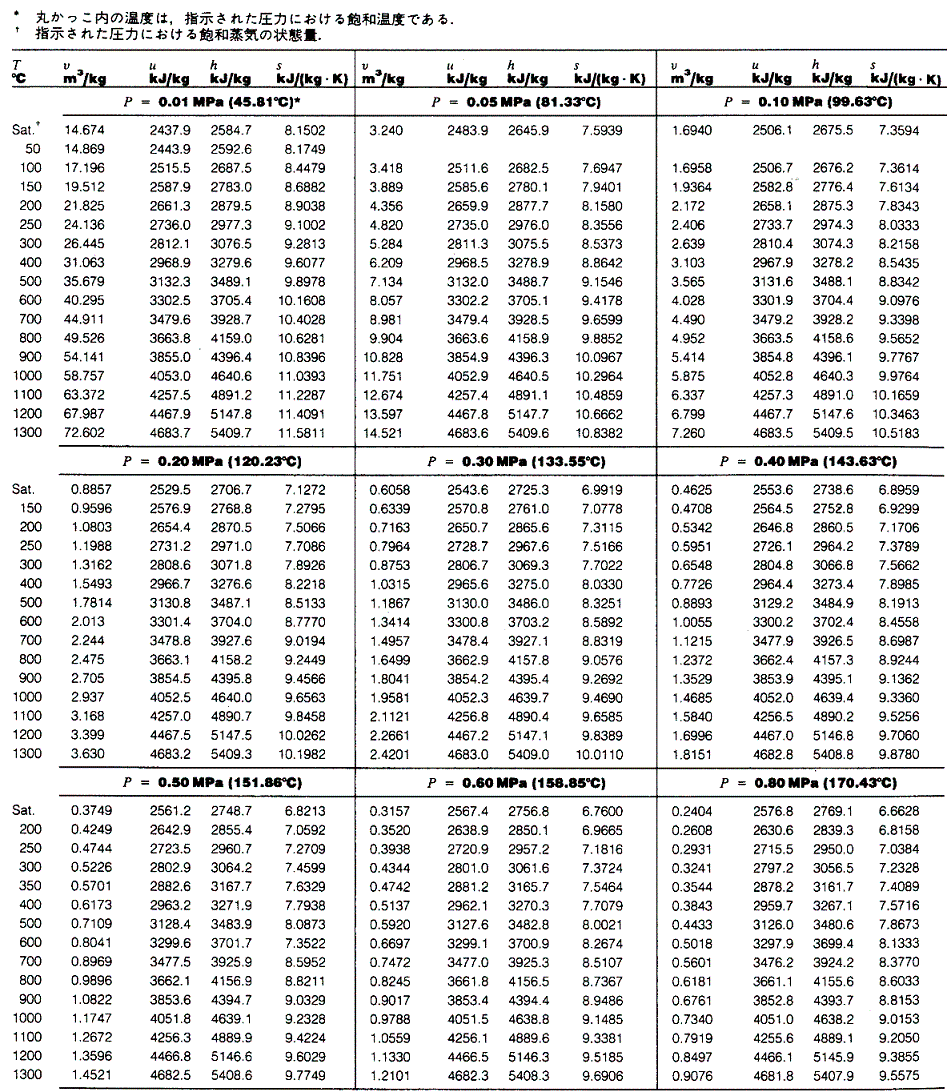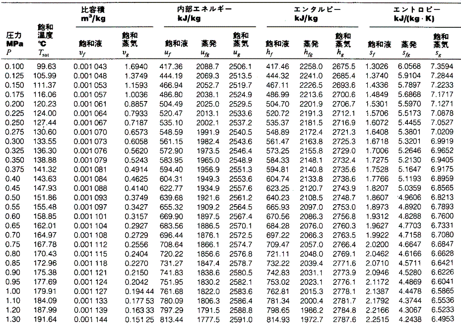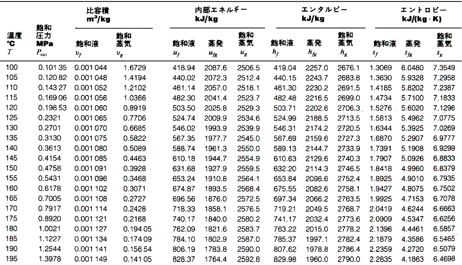 蒸気表(Steam Tables)
