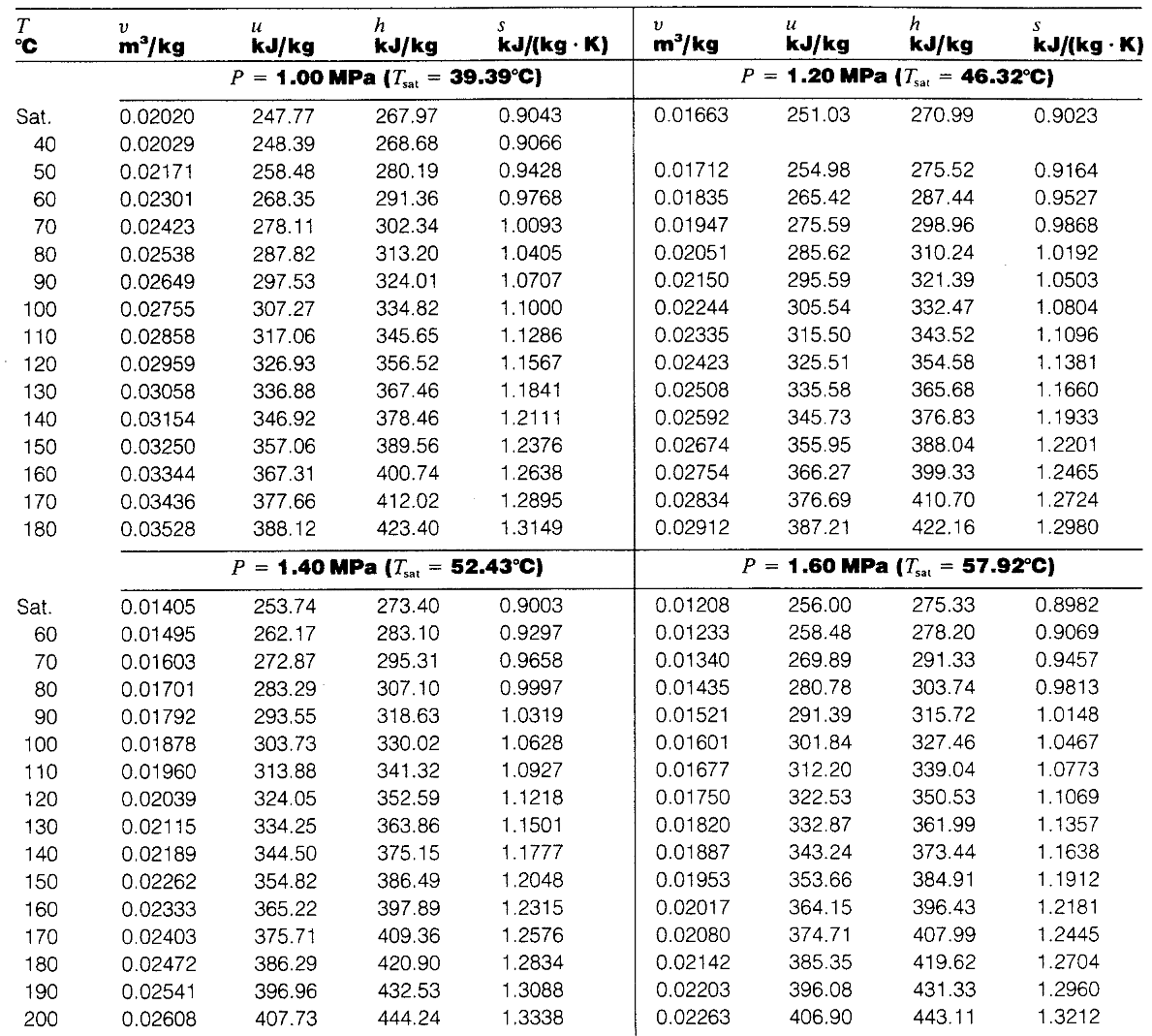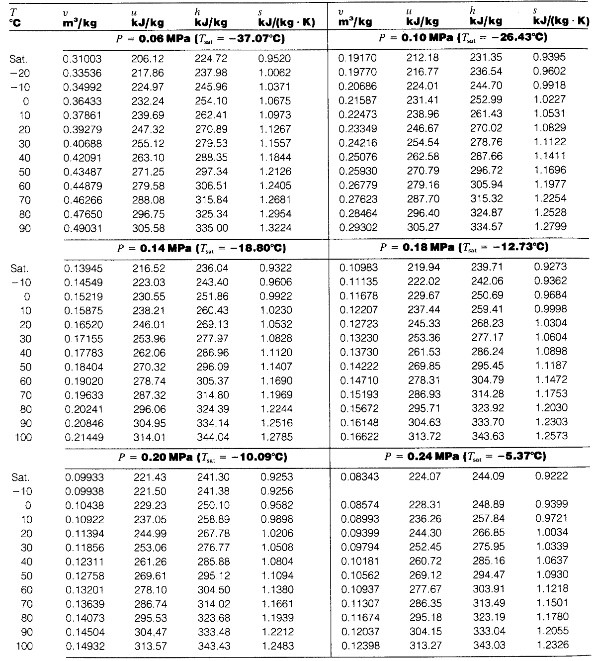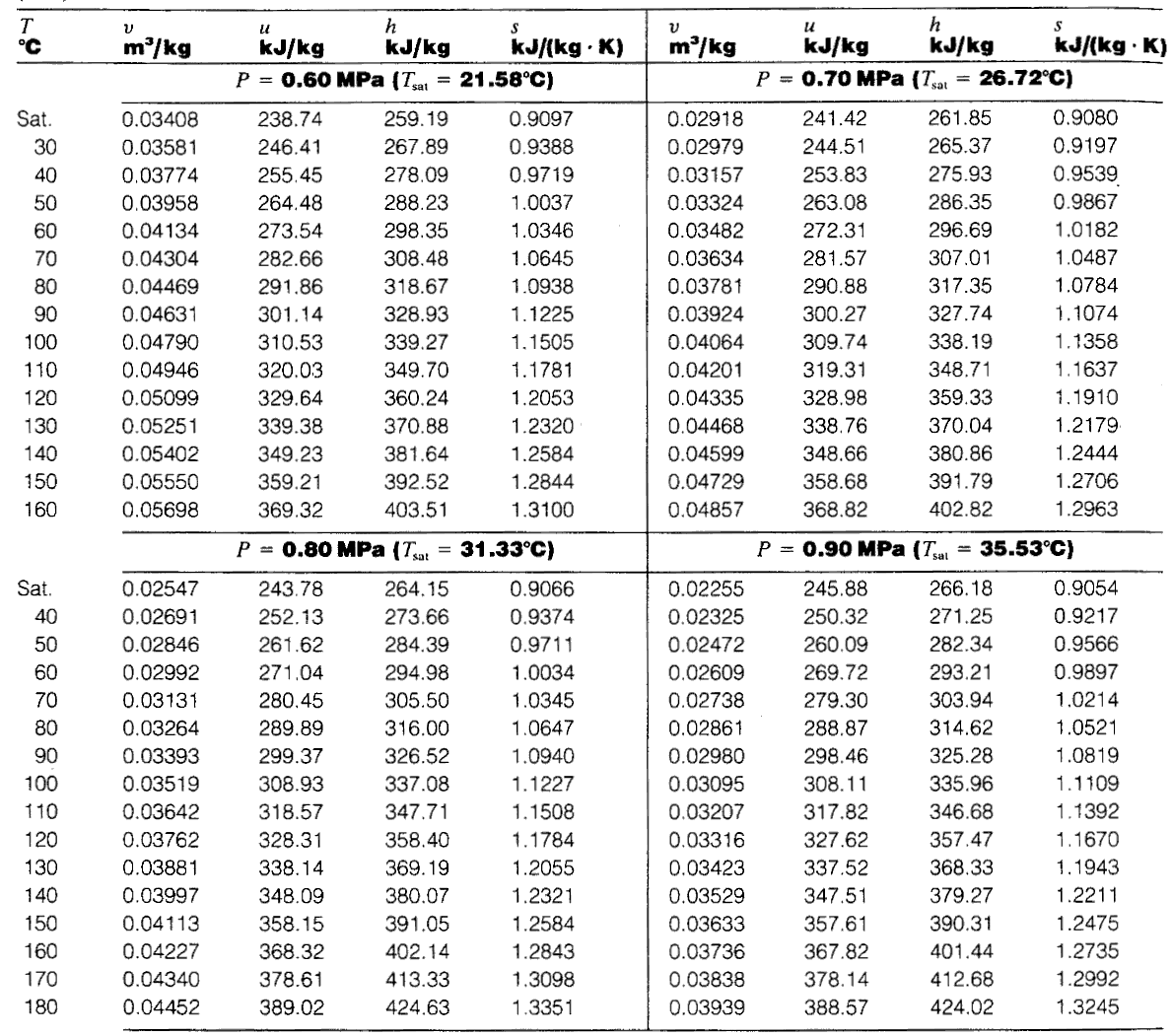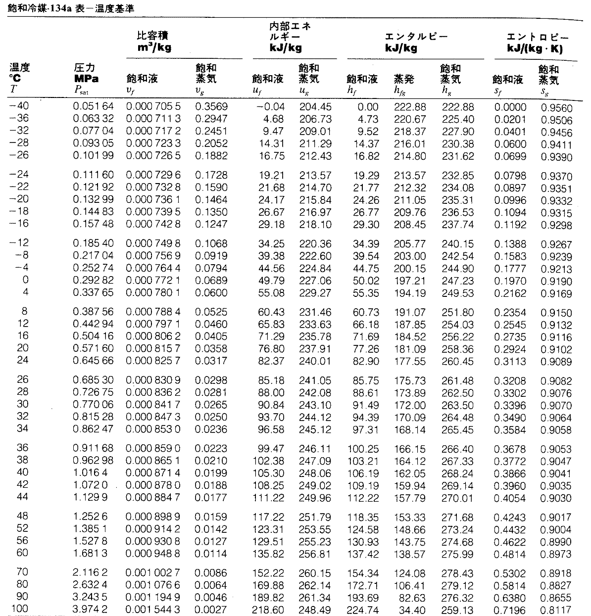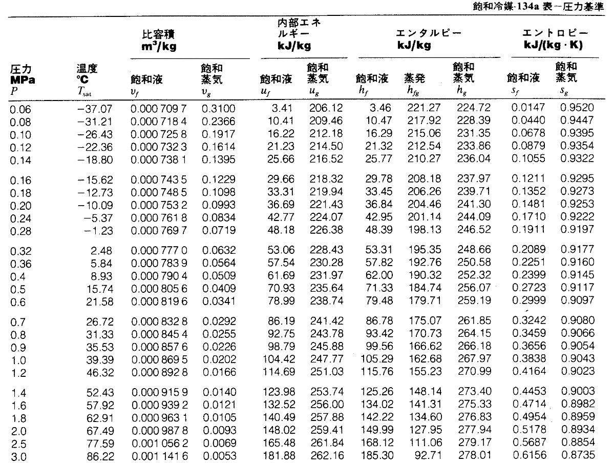 冷媒蒸気表(Steam Tables)