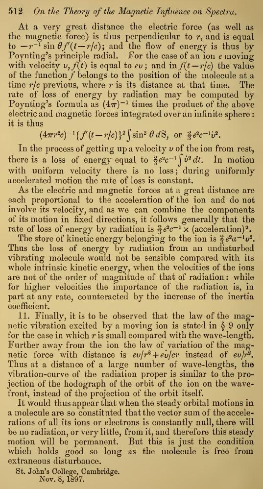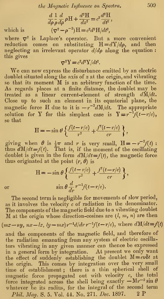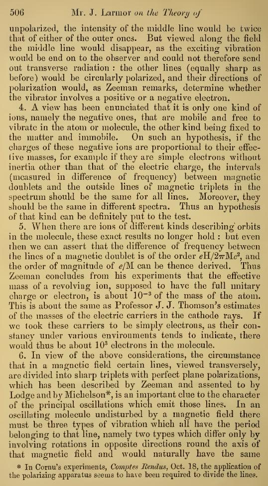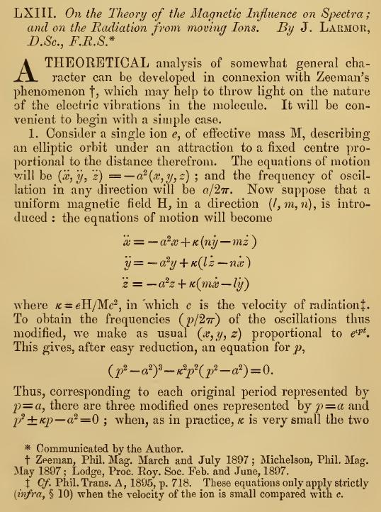 J. Larmor, Phil. Mag. 44, p503〜5012, 1897年