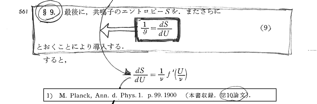 §11. 以下の議論については、別稿「プランクの熱輻射法則(1900年)」9.《2》〜《3》 を参照。