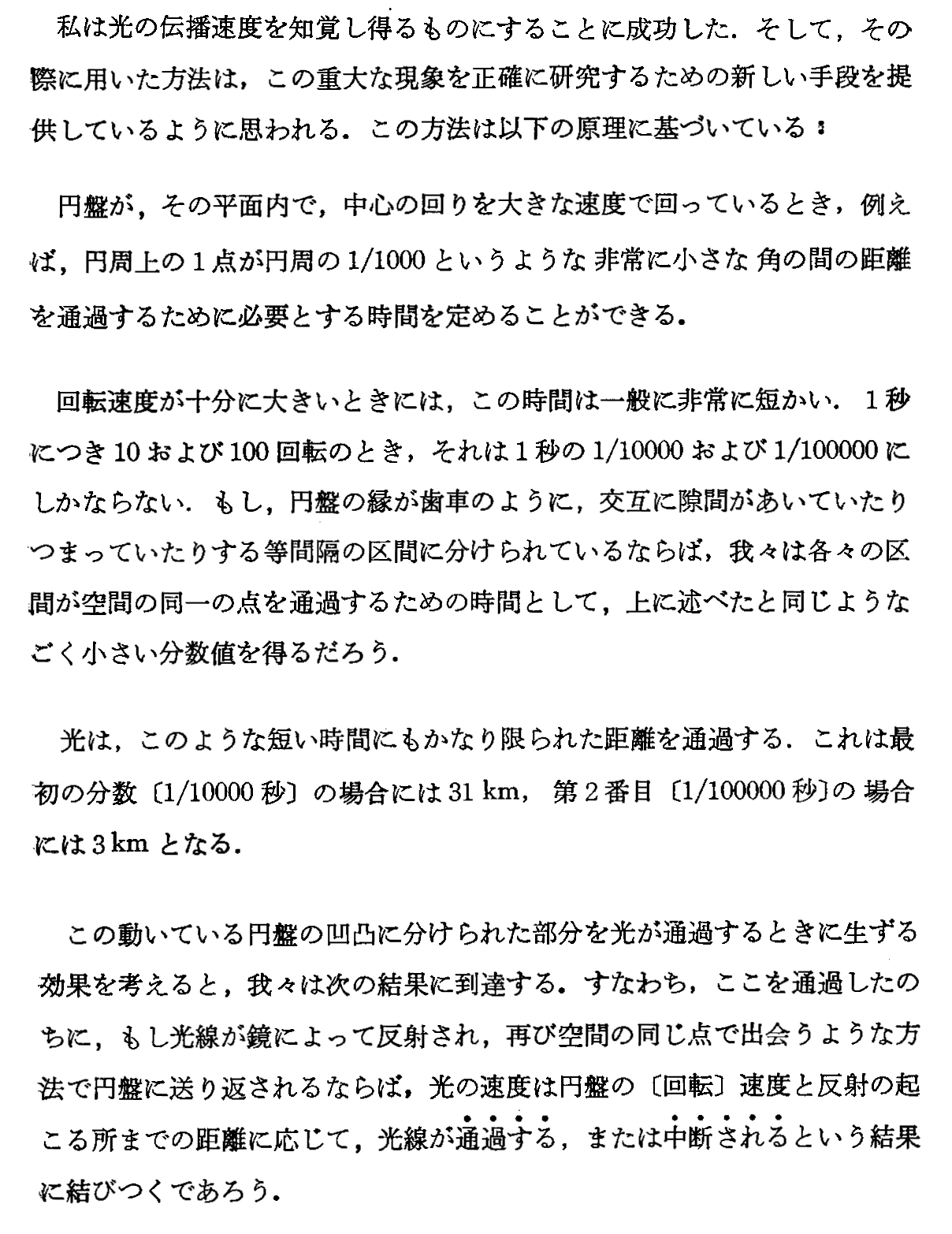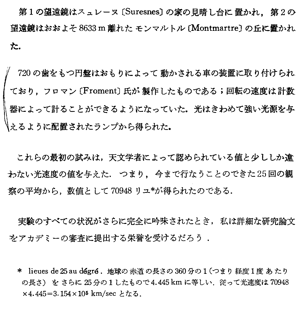 Fizeau,“光の伝播速度に関する実験について”(1849年)