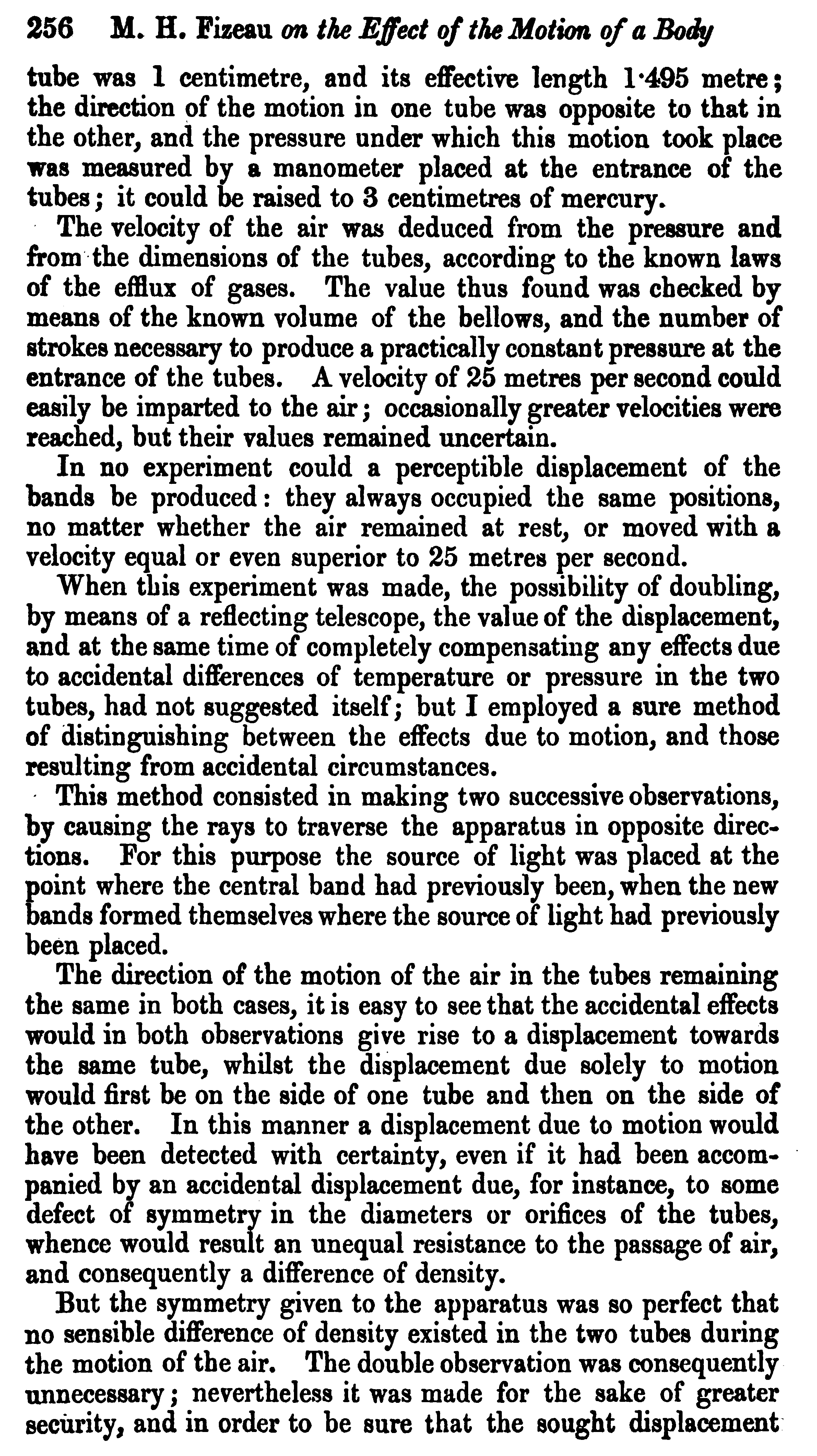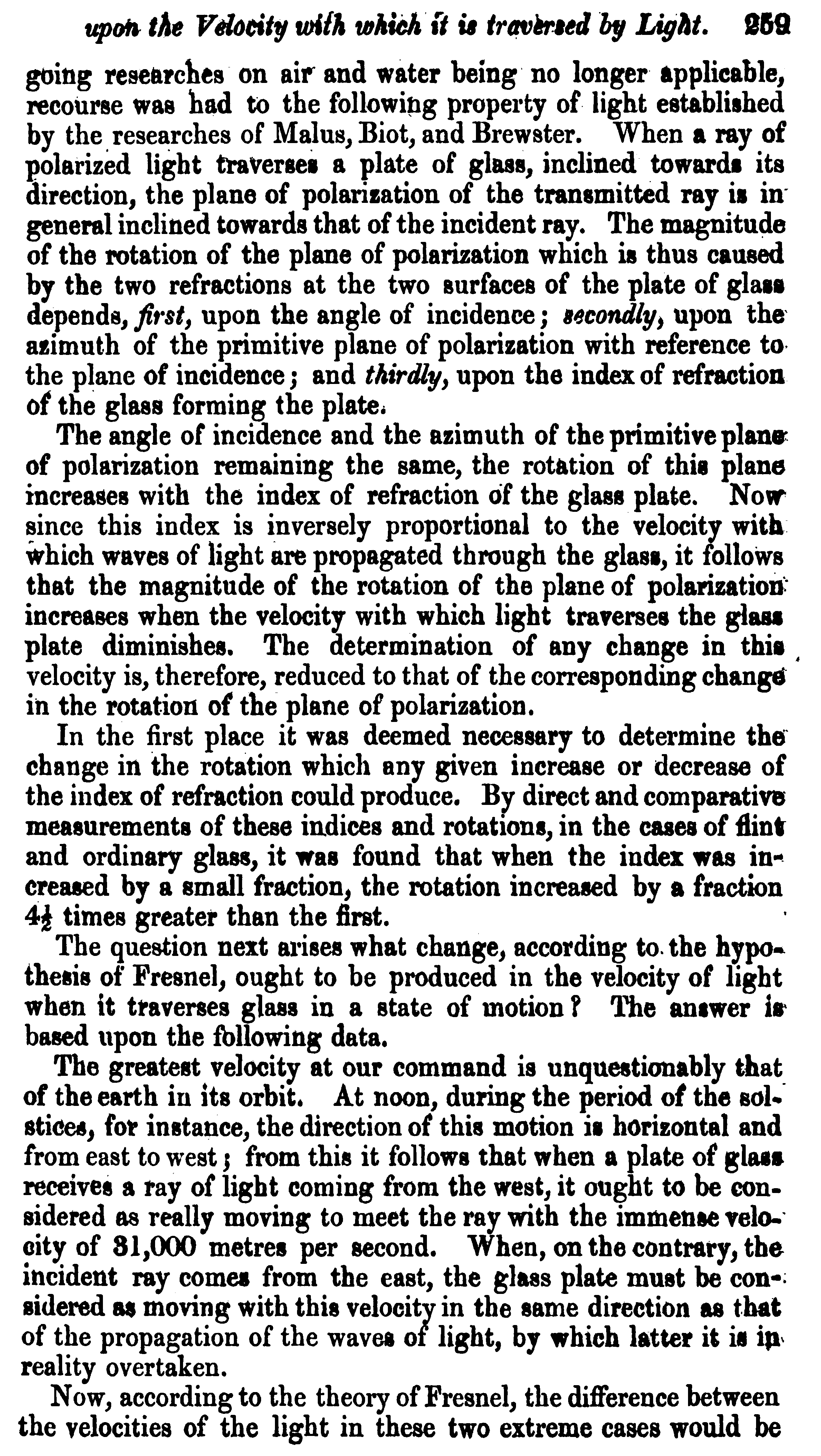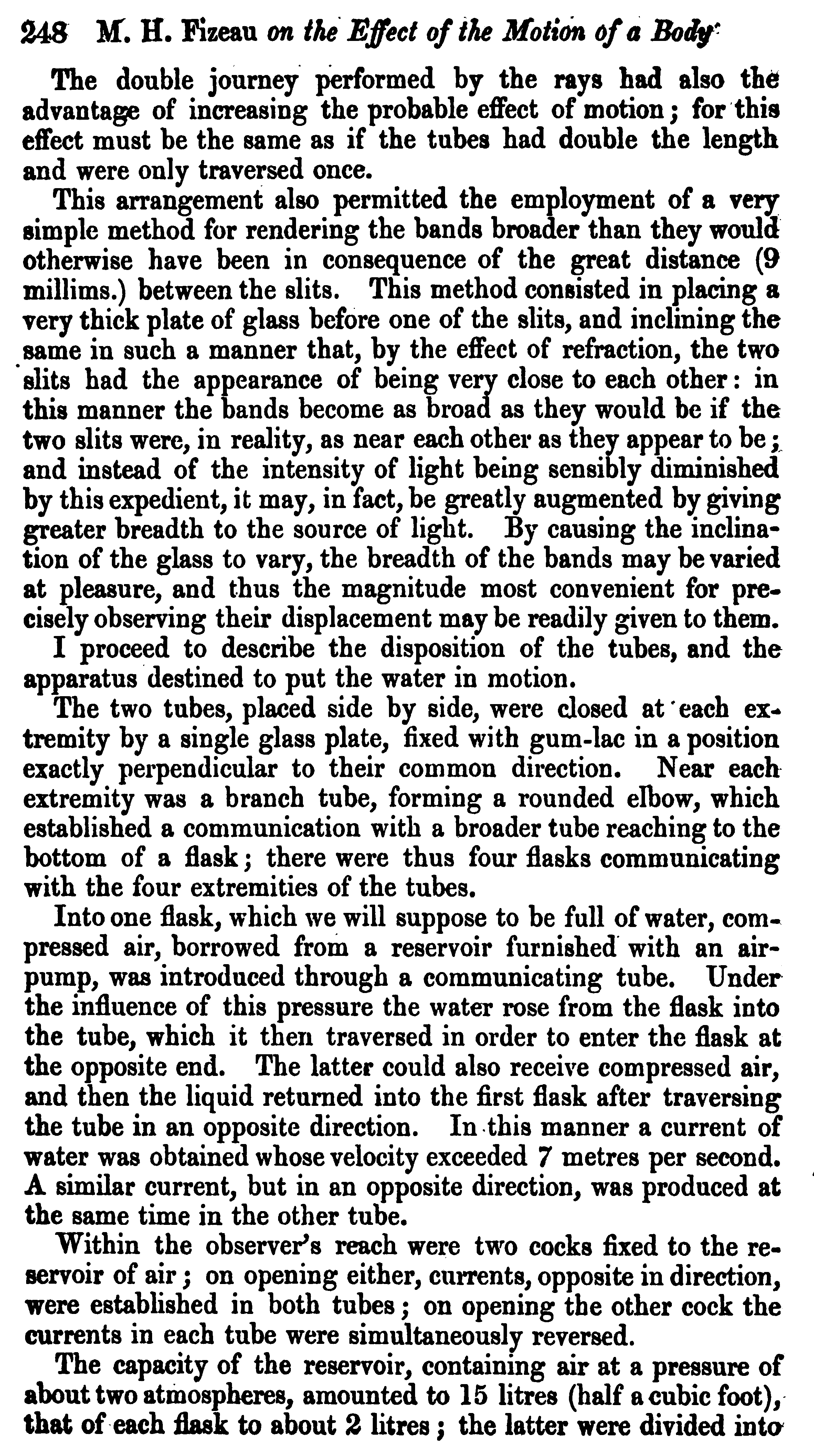 Hippolyte Fizeau, “光が伝播している物体の運動の光の速度への影響について”