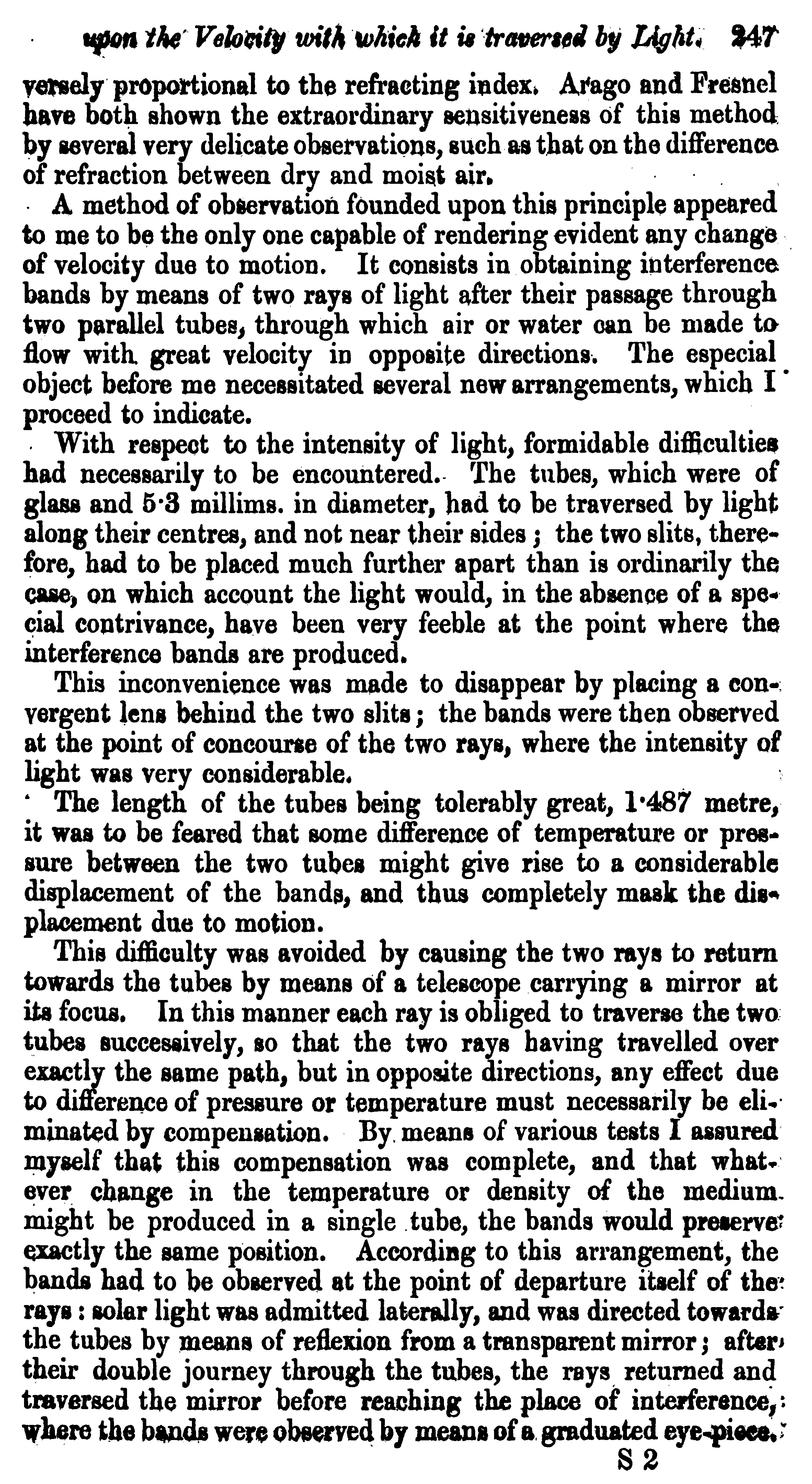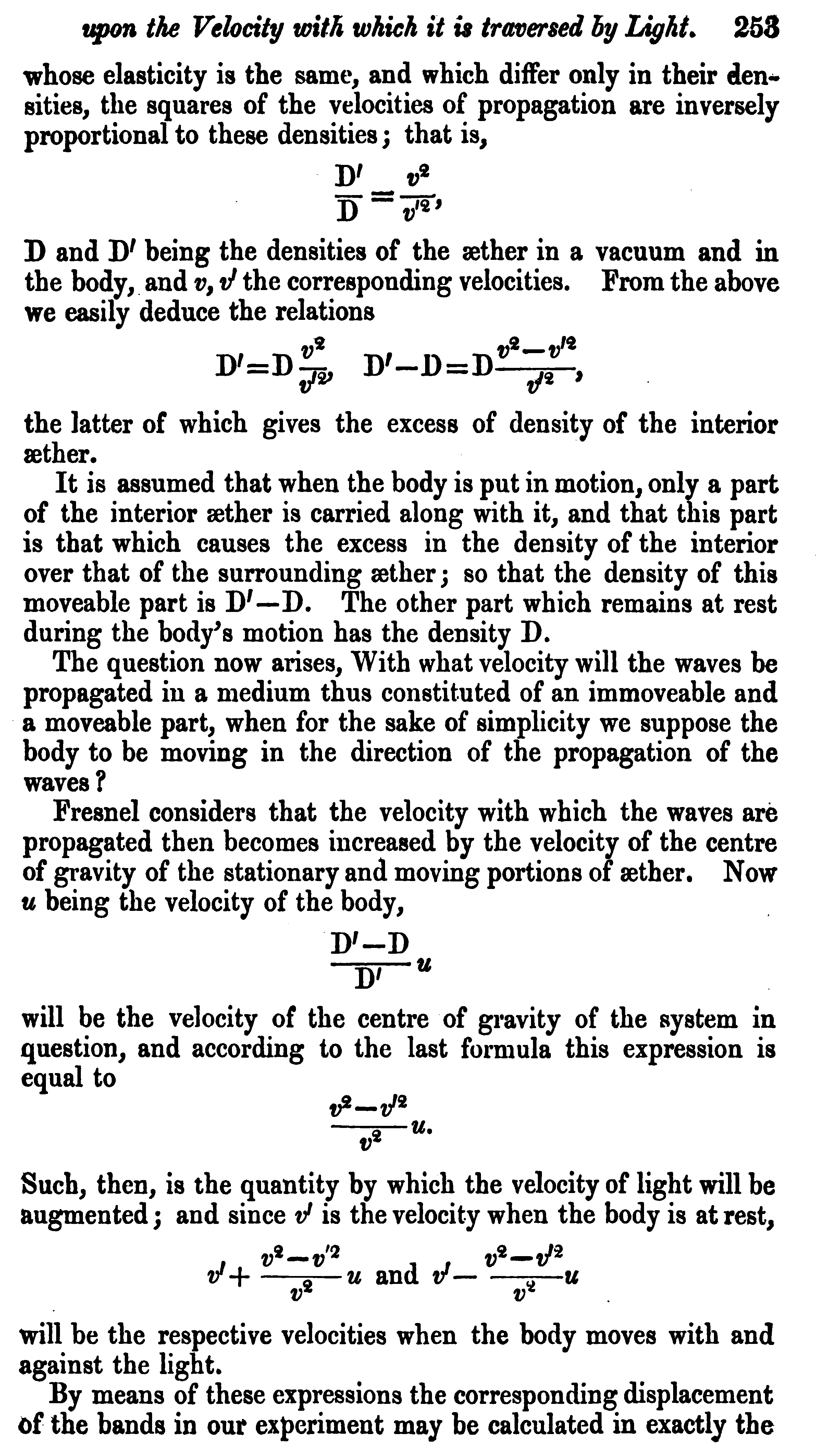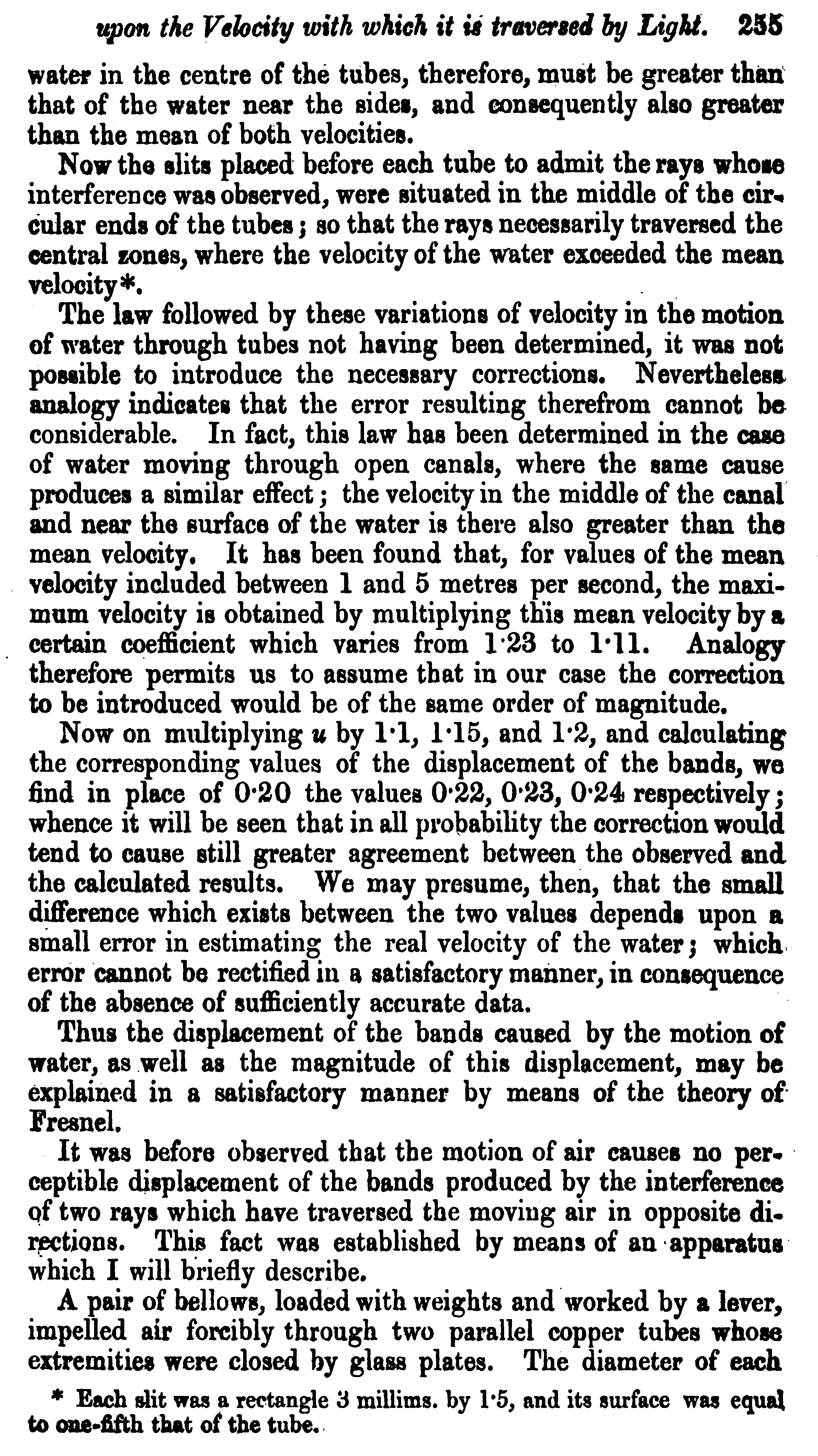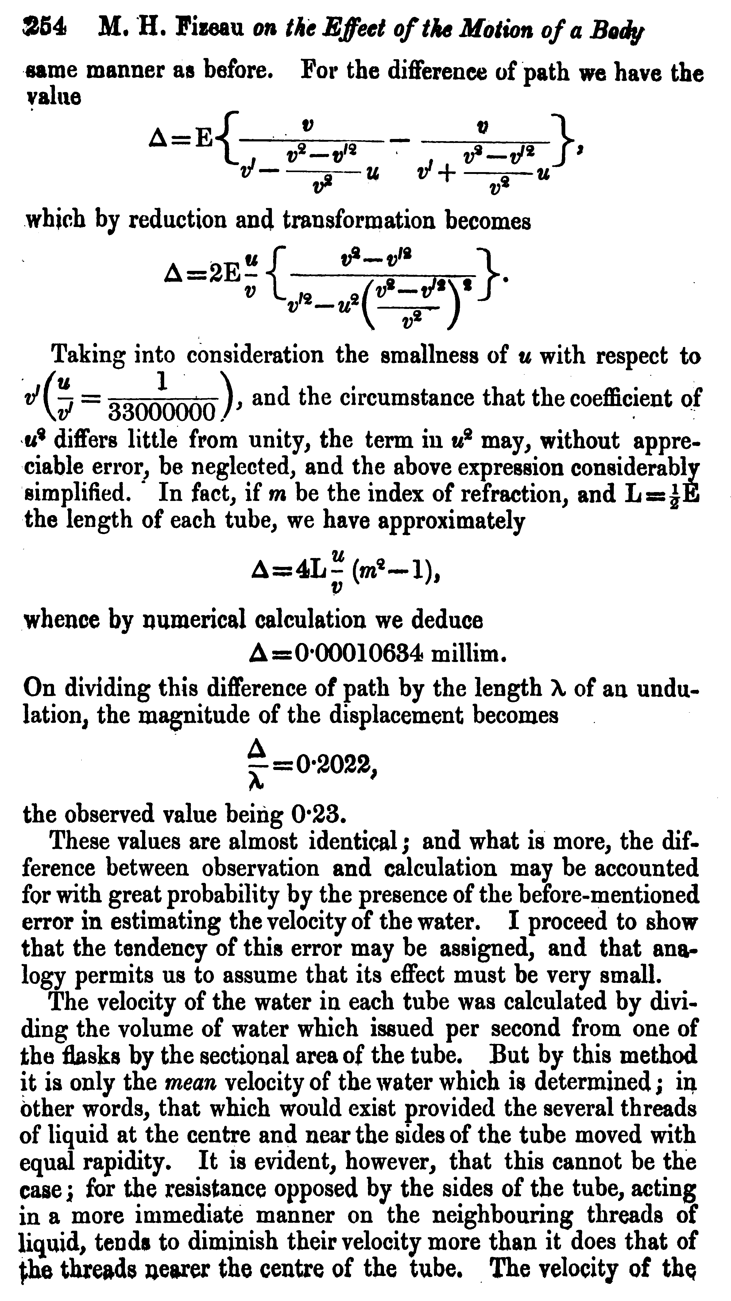 Hippolyte Fizeau, “光が伝播している物体の運動の光の速度への影響について”