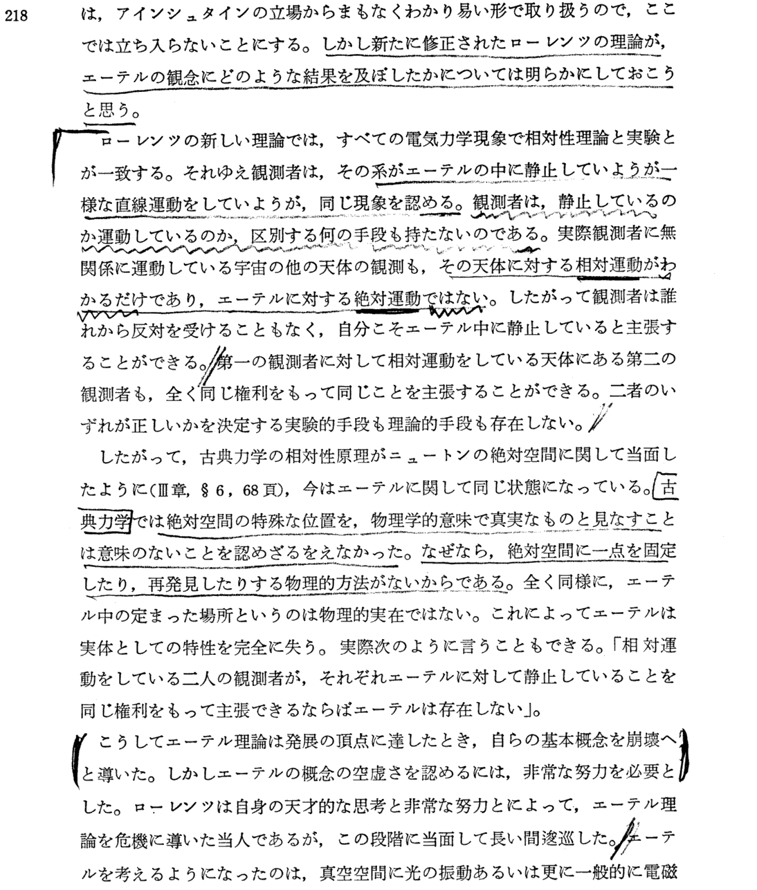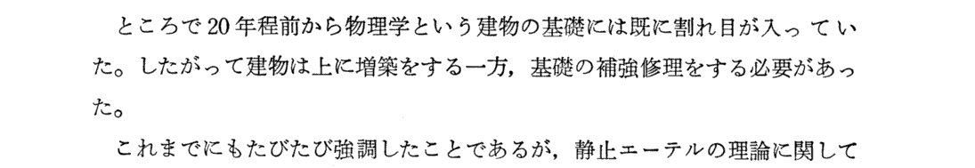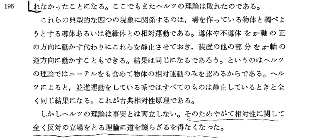 Max Born著「アインシュタインの相対性原理」講談社(1971年刊)のp145〜220より引用 相対性理論への導入としてこの説明に勝るものは無いと思います。簡単な数学しか用いていませんが含蓄深い文章を繰り返し読まれることを勧めます。左欄に記入の数字は、引用した本のページNo.です。文中引用の便利のため記しています。 この本の第V章“ニュートンの宇宙体系”、第W章“光学の基本法則”§7〜11、第Y章“アインシュタインの特殊相対性原理”は別項で引用でしていますので合わせてご覧ください。