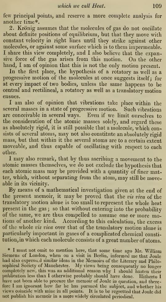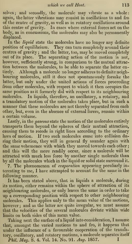 これは、R. Clausius, “Ueber die Art der Bewegung, welche wir Wa¨rme nennen”, Poggendorf's Annalen, Bd.100, S.353〜380, 1857年 を英訳したものです。