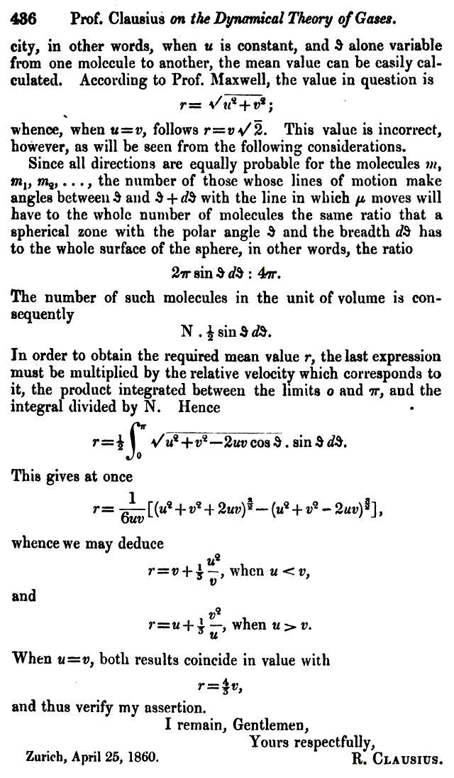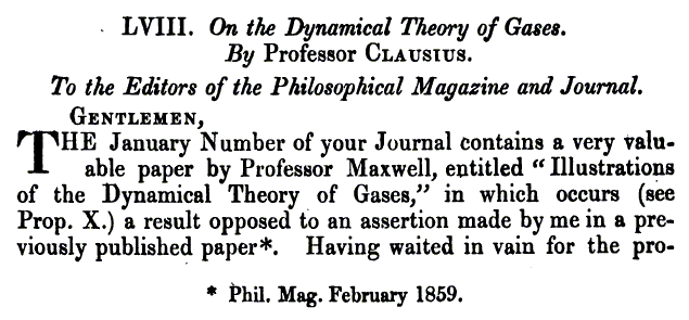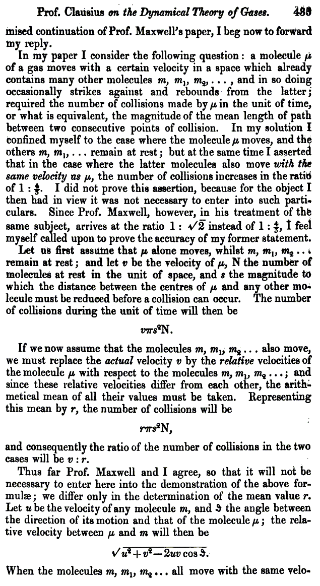 R. Clausius, gOn the Dynamical Theory of Gasesh,